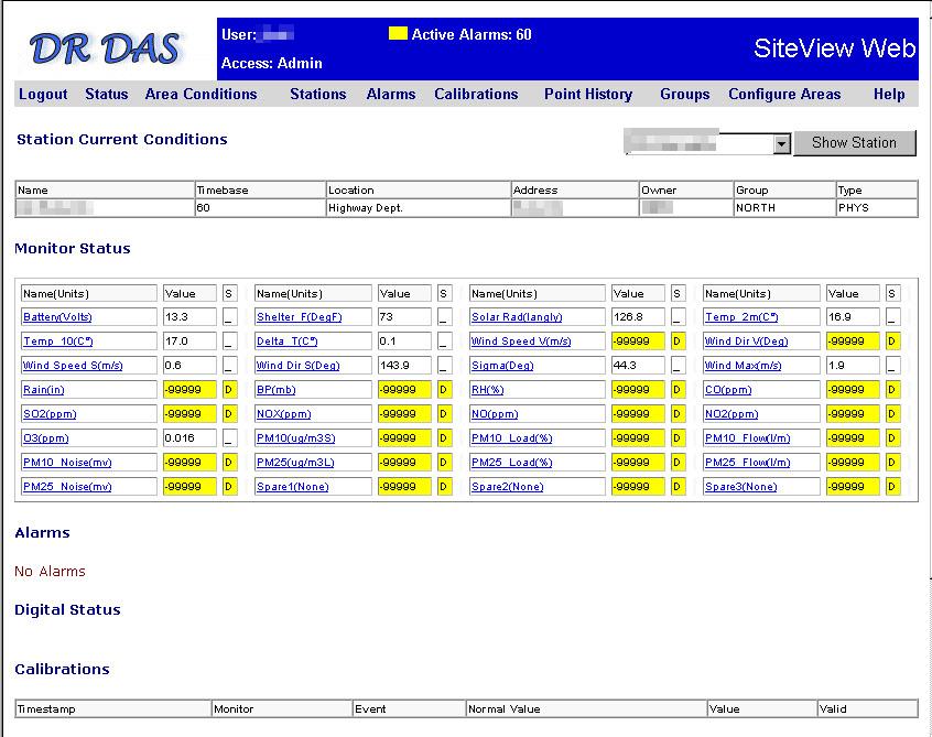 SiteView Web is a standalone web application that features some crossover with the SiteView HMI system – however SiteView HMI is not necessary to use SiteView Web. This website can be used to share select site data with any entity – public or private. It is provides integrated security with the Envista ARM database, and features data tables, graphic visualization and download capabilities. SiteView Web also features a customizable front page where stations can be placed on a map for a quick network view to verify if any issues with monitoring exist.